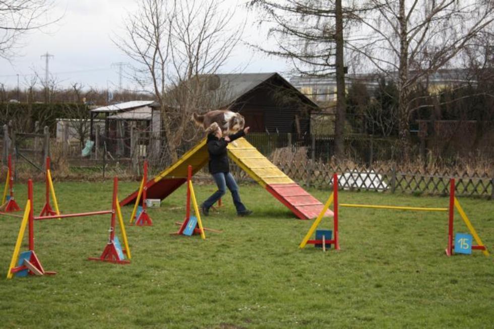 Wir haben mit unseren Jungs, Dave und Leo, Agility betrieben. Agility ist ein Hundesport, bei denen die Hunde einen ihnen unbekannten Parcour mittels Hand und Rufzeichen in einer bestimmten Zeit bewältigen müssen. Bei dieser Art von Hundesport ist das Zusammenspiel zwischen Hund und Besitzer absolute Vorraussetzung, da der Hund weder an der Leine ist noch berührt werden darf. Dieser Sport fordert alles was ein Hund auspowert: Gehorsam, Ausdauer, Schnelligkeit und Konzentration.